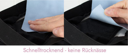Nimmt die Flüssigkeit auf und sorgt für ein trockenes Tragegefühl.