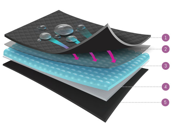 Verteilt die Flüssigkeit und leitet sie schnell vom Körper weg.